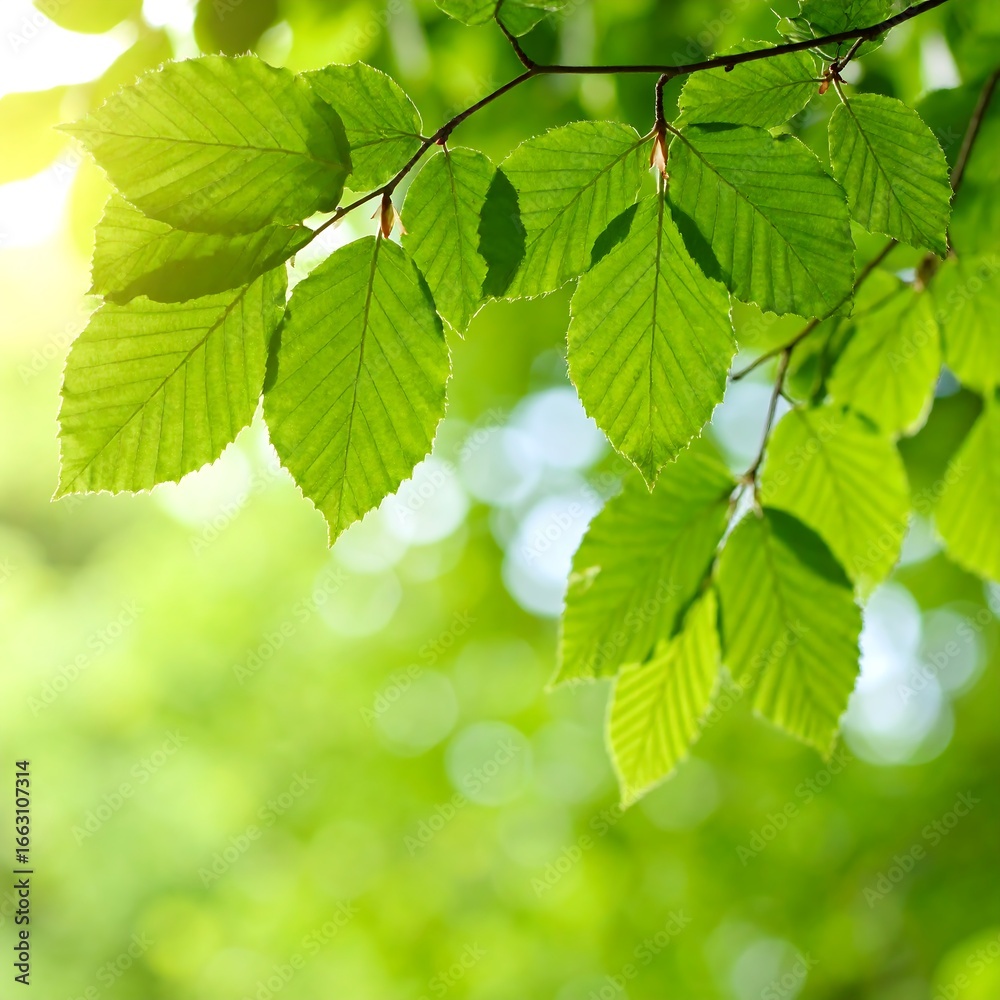 Fototapeta na wymiar - Fresh green leaves in sunlight.