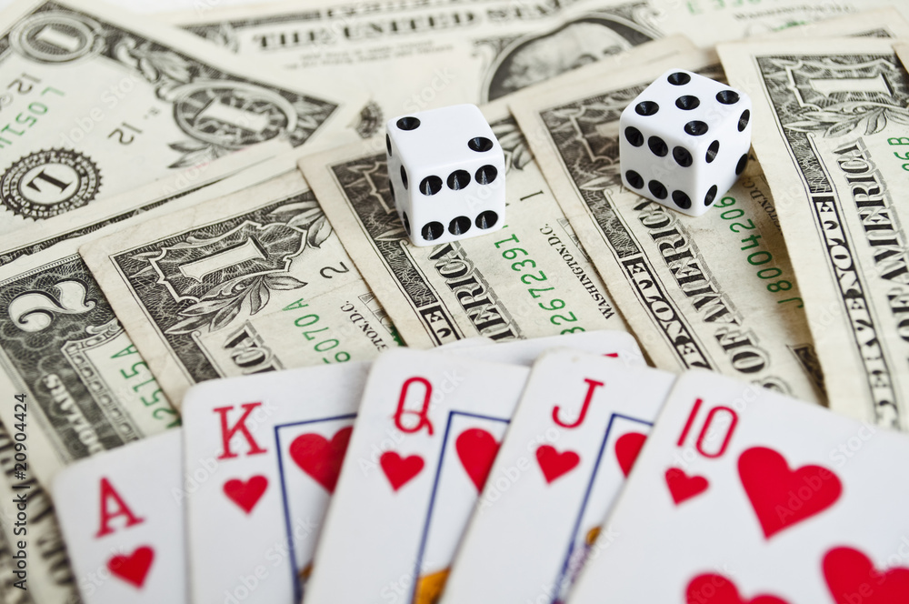 Fototapeta na wymiar - Royal flash z pieniędzmi i kości.