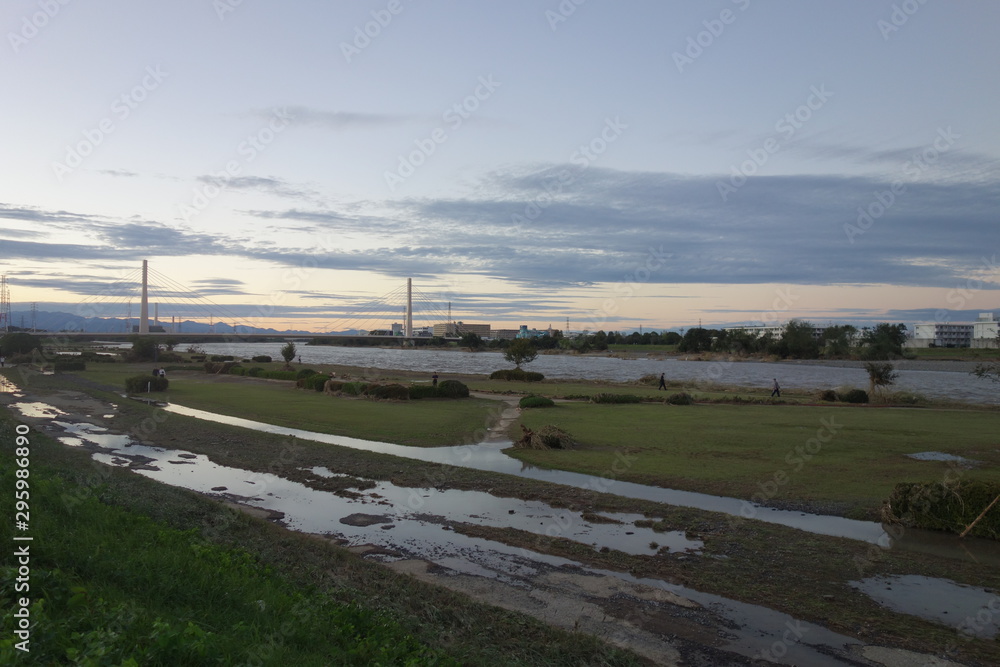 Fototapeta na wymiar - 台風通過後の多摩川の河原.