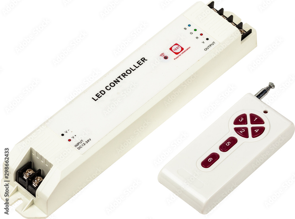 Fototapeta na wymiar - Controller for RGB LED with remote control isolated on white.