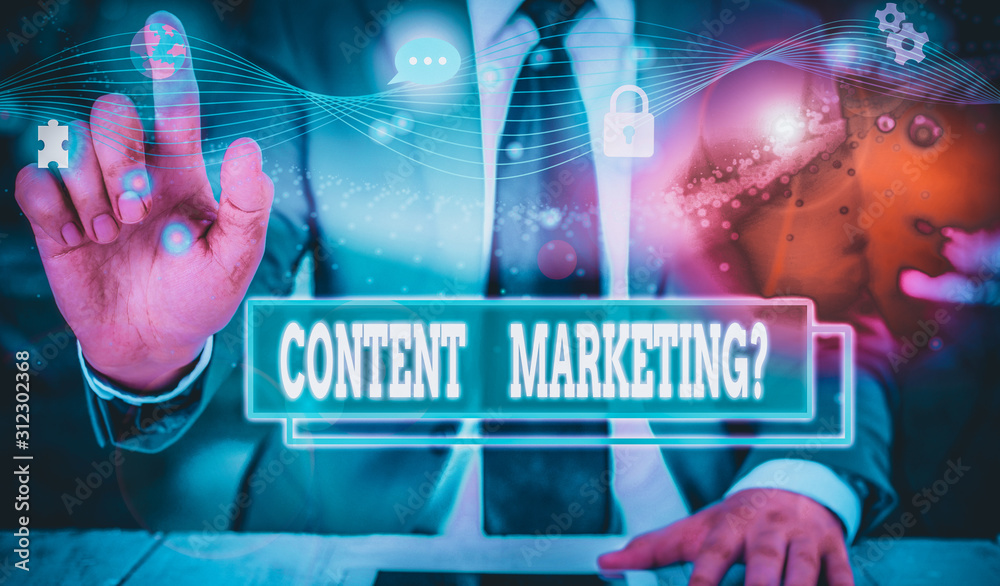 Fototapeta na wymiar - Text sign showing Content Marketing question. Business photo showcasing involves creation and sharing of online material Picture photo system network scheme modern technology smart device.