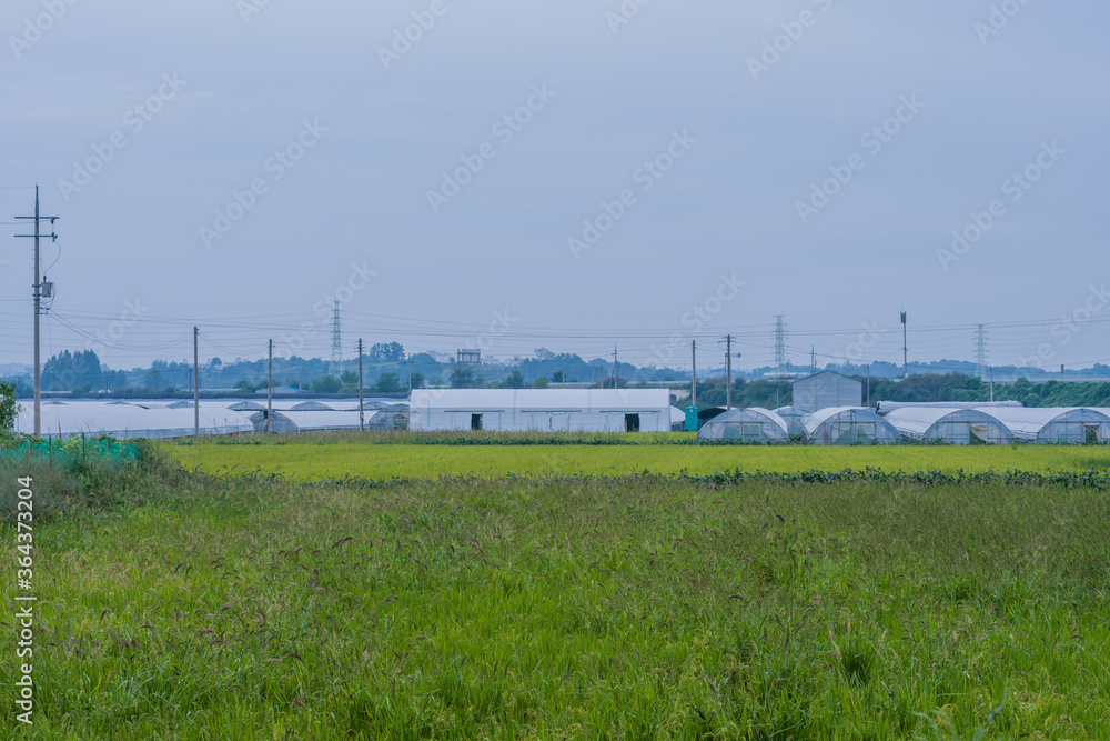 Fototapeta na wymiar - Landscape of rural farming community.