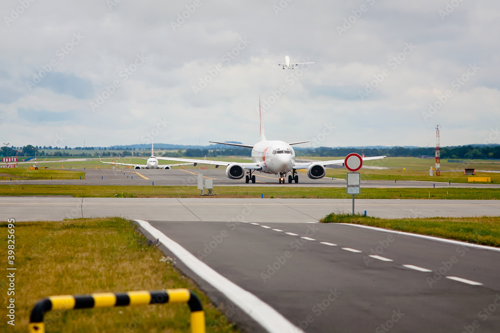 Fototapeta na wymiar - Widok z przodu na samolotach kołowania do pasa startowego.