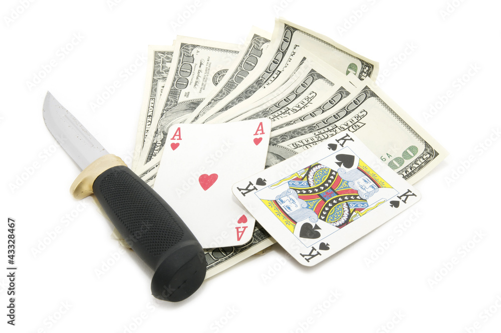 Fototapeta na wymiar - нож деньги и карты.
