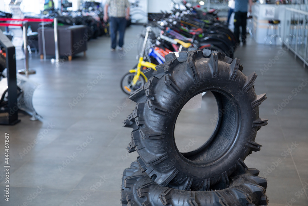 Fototapeta na wymiar - ATV in the store.Sale and repair of motorcycles and bicycles..