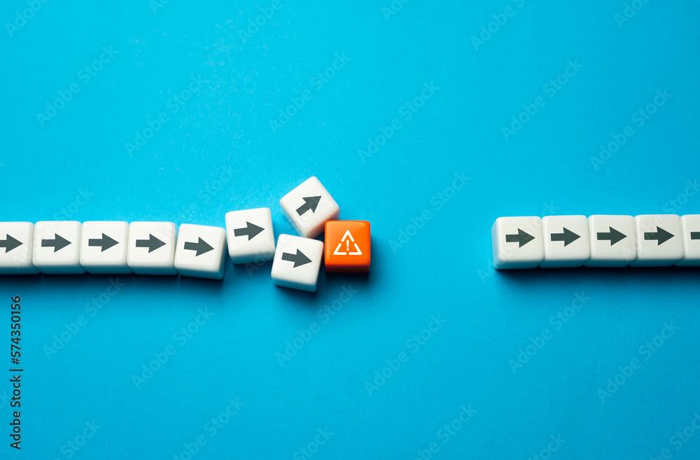 >Fototapety na wymiar>Stopping movement and disruption of processes. Create a problem and slow down the pace of work. Make a delay and accumulation of outstanding tasks. Full stop. Stress, problems. Something wrong.