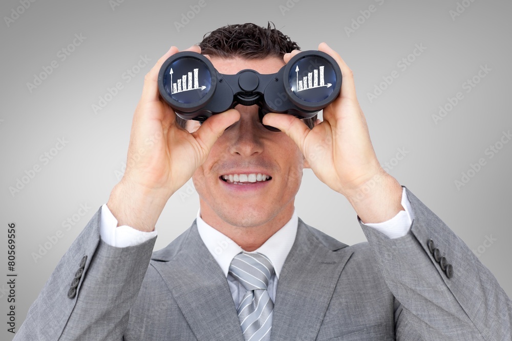Fototapeta na wymiar - Composite image of businessman holding binoculars.