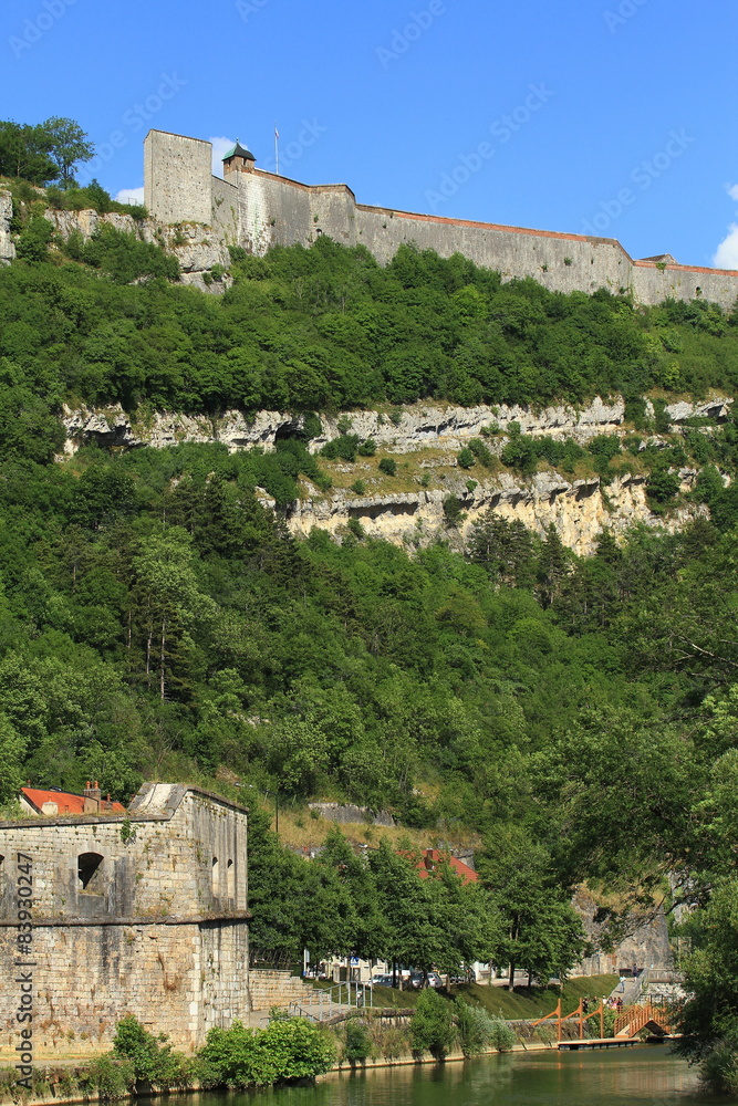 Fototapeta na wymiar - Le Doubs et fortifications de la Citadelle de Besançon.