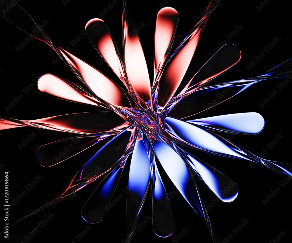 >Fototapety na wymiar>Wybrane motywy - zobacz więcej !>Stare zdjęcia>Neon glass flower shape with glowing red blue light effect on black background. Abstract floral pattern of transparent spiral lines in radiant colors. 3D geometric graphic wallpaper. 3D illustration
