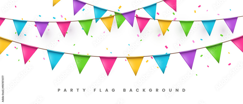 Fototapeta na wymiar - Colorful Party Flag Garland With Confetti.