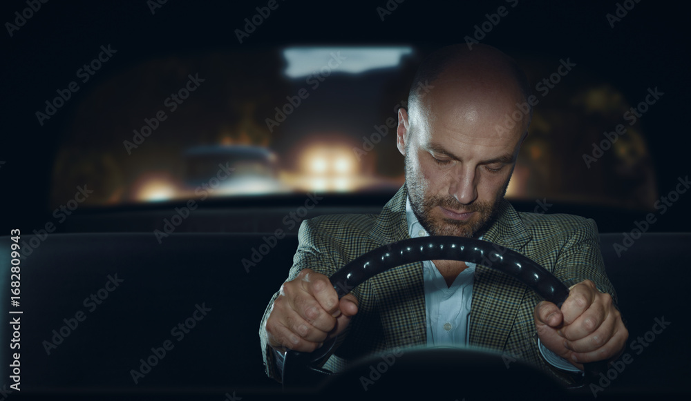 Fototapeta na wymiar - Man falling asleep while driving his car.