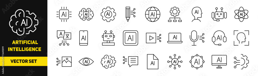 Fototapeta na wymiar - AI line icons. Artificial Intelligence icon set. Vector .