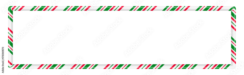 Fototapeta na wymiar - Christmas candy cane rectangle border frame. Festive Holiday Candy Cane Frame with Red, Green and White Stripes. Editable stroke. Vector illustration.