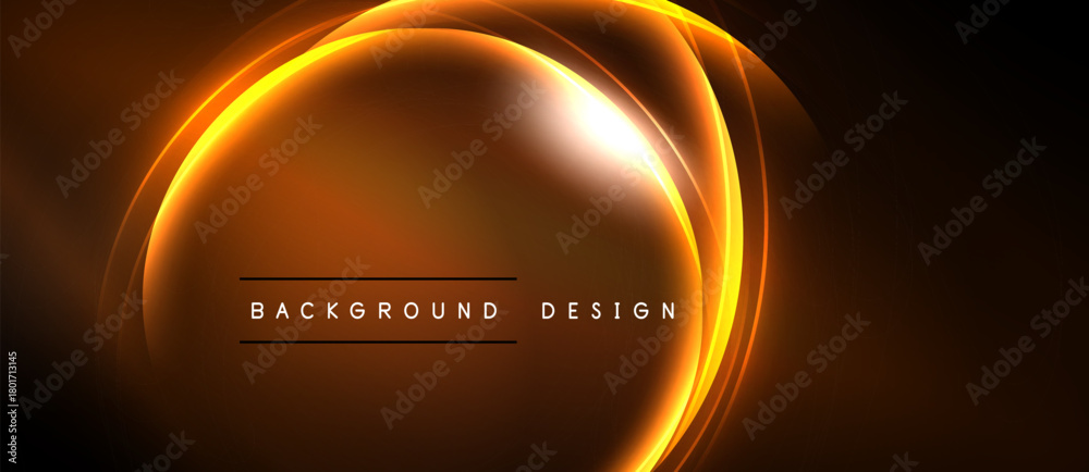 Fototapeta na wymiar - Abstract orange glow, curved lines create circular shape. Dark background emphasizes bright central design element. Modern aesthetic..