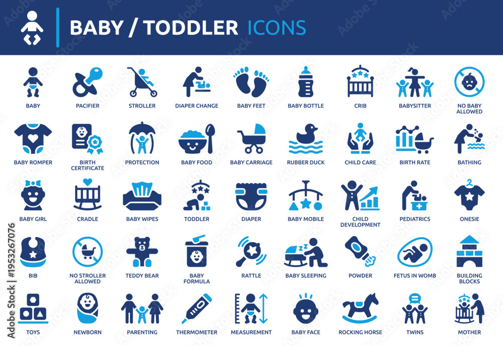 Fototapeta na wymiar - Baby icon set. Toddler icons collection. Containing newborn, nursery, childhood, infant and parenting icon vector illustration..