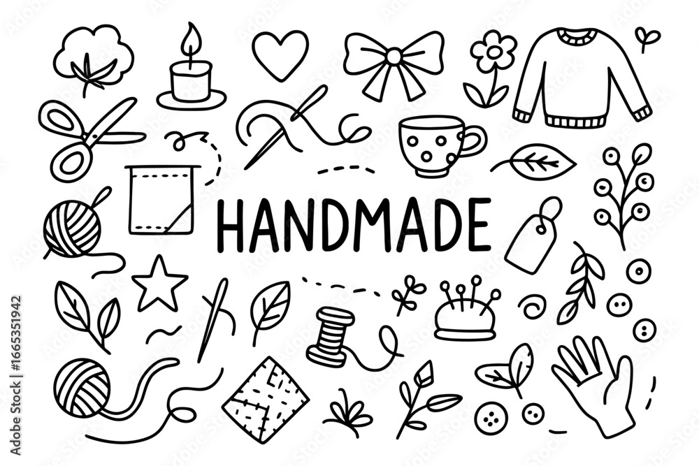Fototapeta na wymiar - Handmade craft doodles collection for diy projects.