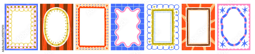 >Fototapety na wymiar>Wybrane motywy - zobacz więcej !>Taniec>Doodle-style picture frames set. Modern cute abstract decorative borders, whimsical creative backgrounds, design elements, decorations. Flat vector illustrations isolated on white background