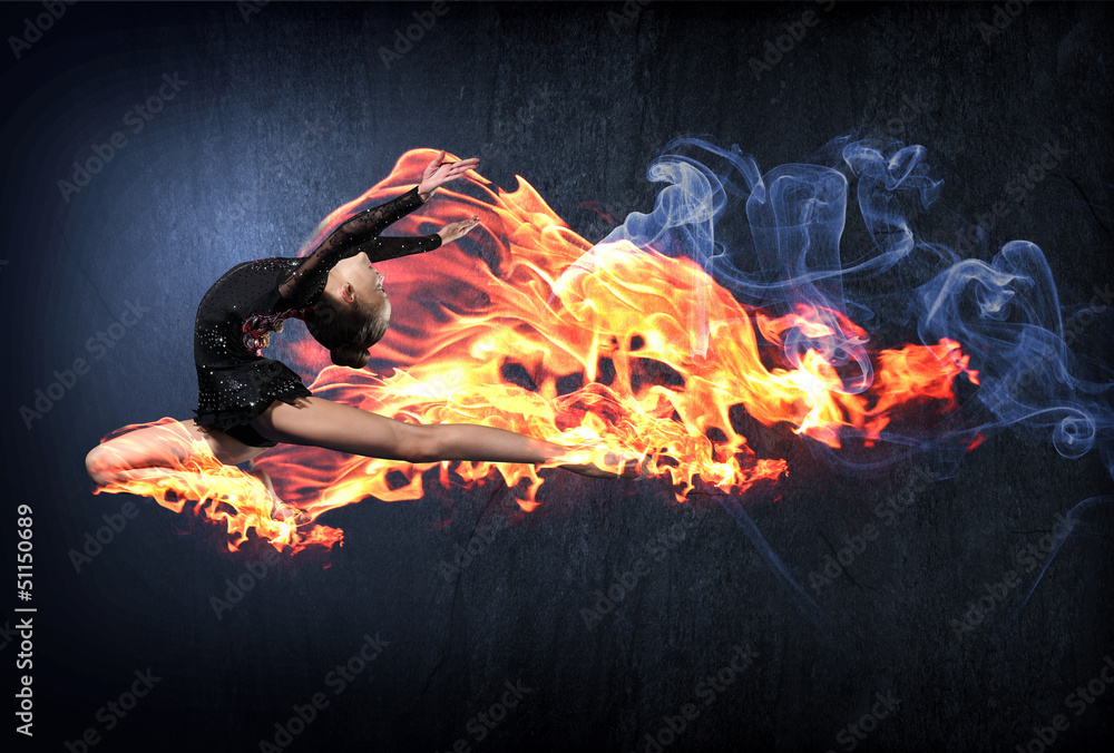 Fototapeta na wymiar - Young woman in gymnast suit posing.