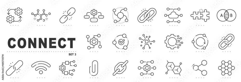 Fototapeta na wymiar - Line icons for connect, network, link, integration and cloud sync. Editable stroke.