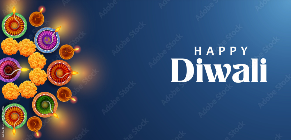 Fototapeta na wymiar - burning diya on Happy Diwali Holiday background for light festival of India.