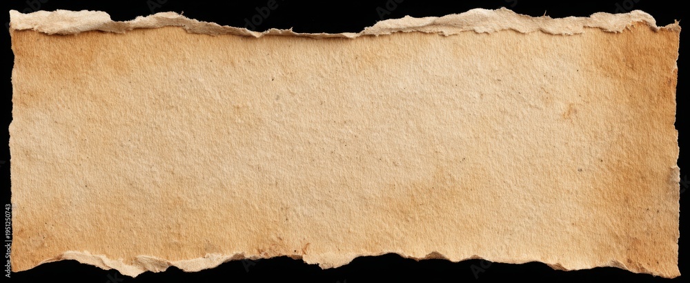Fototapeta na wymiar - Vintage aged ripped parchment features textured beige paper on a transparent png background..