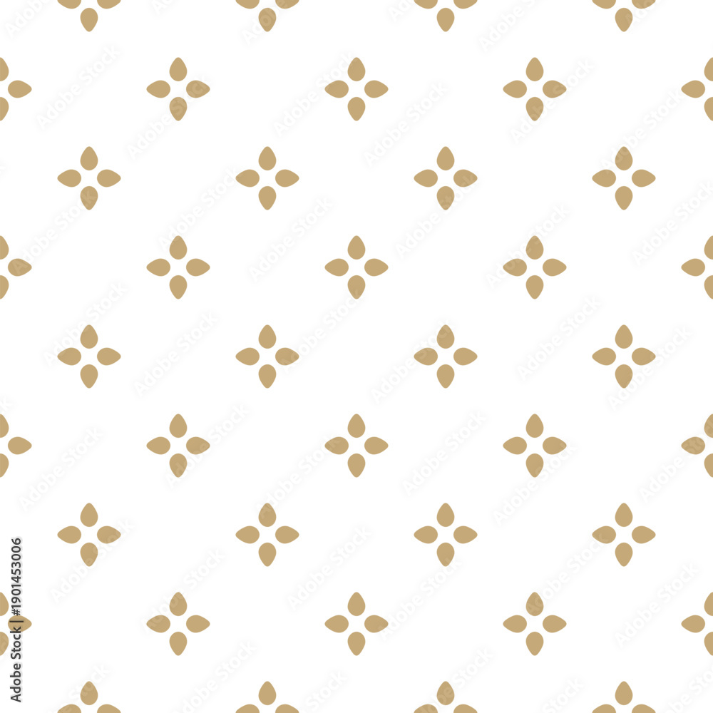 >Fototapety na wymiar>Wybrane motywy - zobacz więcej !>Tramwaj>Golden minimal floral seamless pattern. Vector abstract minimalist geometric ornament with small stylized flowers, leaves, petals. Simple luxury gold and white background texture. Repeatable design