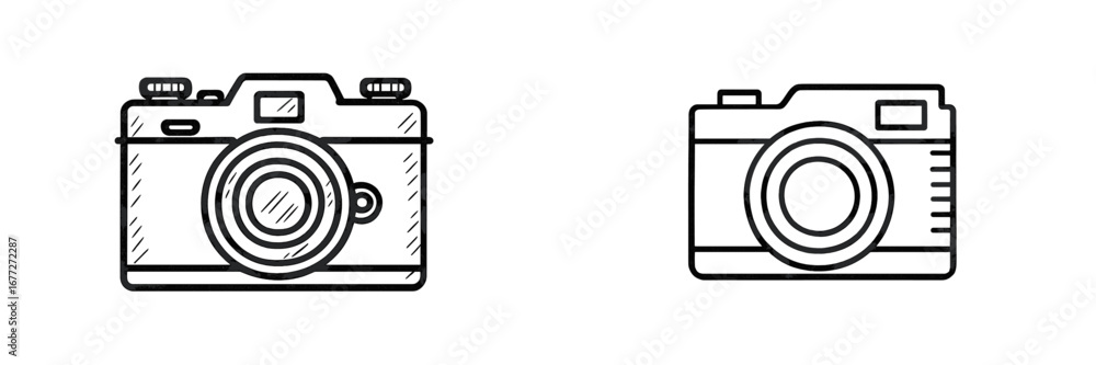 Fototapeta na wymiar - Two vintage camera line art icons.