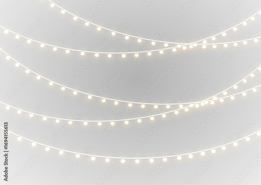 Fototapeta na wymiar - Christmas garland string lights shining with bright bulbs, glowing seasonal star and holiday decoration png..
