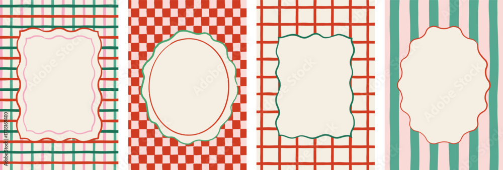 Fototapeta na wymiar - Christmas frames, backgrounds. Hand drawn Christmas background set, cards, banners, prints with patterns and frames. Vector art and illustration.