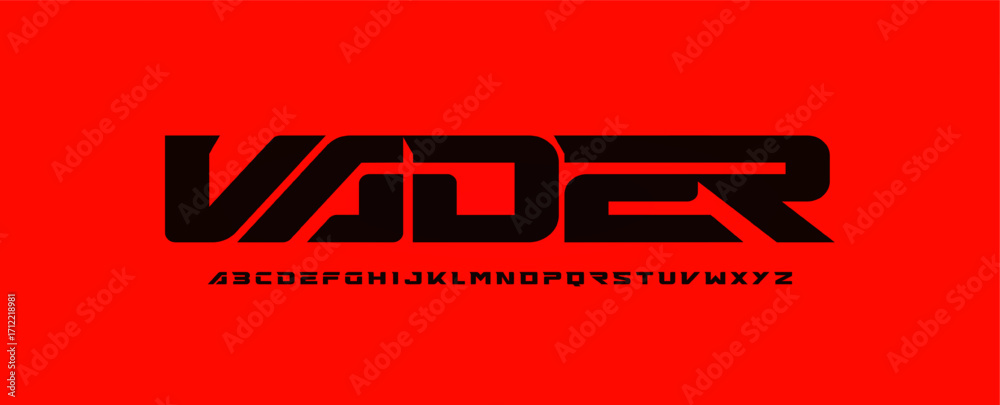>Fototapety na wymiar>Wybrane motywy - zobacz więcej !>Tygrys>Futuristic cyberpunk space alphabet, bold wide stencil cutout font for modern tech sport race logo, dynamic scifi heavy headline, geometric typographic design. Vector typeset