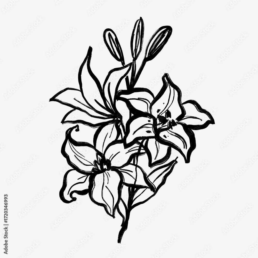 Fototapeta na wymiar - Black lilies line art, simple graphic illustration.