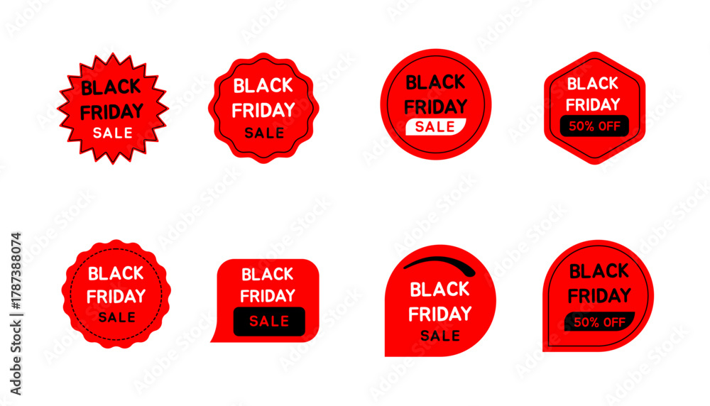 Fototapeta na wymiar - Black Friday Sale badges and labels. Retro vintage sale quality tags, labels, sale banner promotions, special offer, discount and sticker design. Vector illustration.