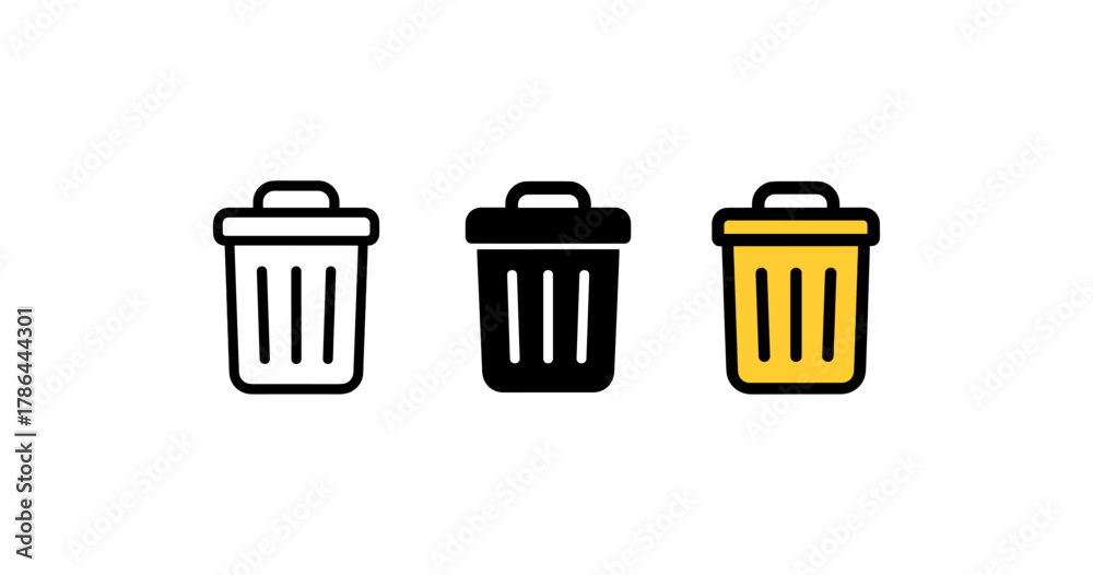 Fototapeta na wymiar - Minimalist trash bin icons in outline, solid, and colorful styles.