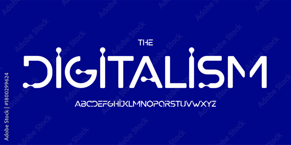 >Fototapety na wymiar>Wybrane motywy - zobacz więcej !>Warszawa>Biotech futuristic logo font, connected sci-fi alphabet. Rounded digital typeface for science headline, neural tech UI, innovation lab display, AI interface, modern system branding. Vector typography.