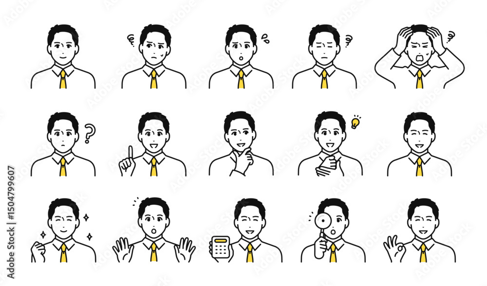 Fototapeta na wymiar - 若いビジネスマンの表情アイコンセット.