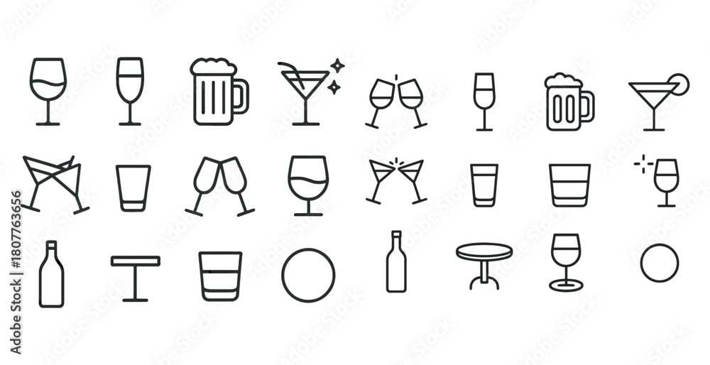 Fototapeta na wymiar - Minimalist drink icon set featuring wine, beer, and cocktails.