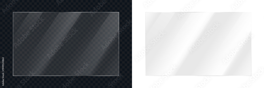 >Fototapety na wymiar>Wybrane motywy - zobacz więcej !>Wenecja>Realistic transparent shiny glossy glass panel with light glare reflective surface effect overlay, shiny transparent plastic panel, clear plastic sheets with reflection on transparent and white backgr