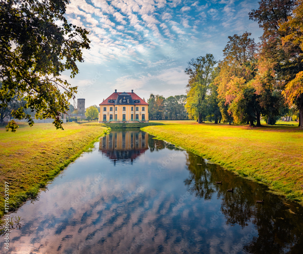 Fototapeta na wymiar - Wonderful morning view of Palace in Choroszcz, Bialystok region, Poland; Europe. Astonishing summer scene of Polish countryside. Traveling concept background..