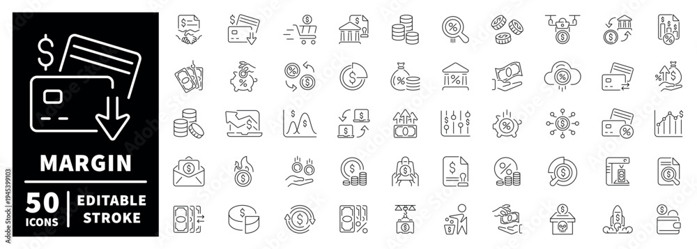 Fototapeta na wymiar - Finance and business outline icon set with editable stroke linear style.