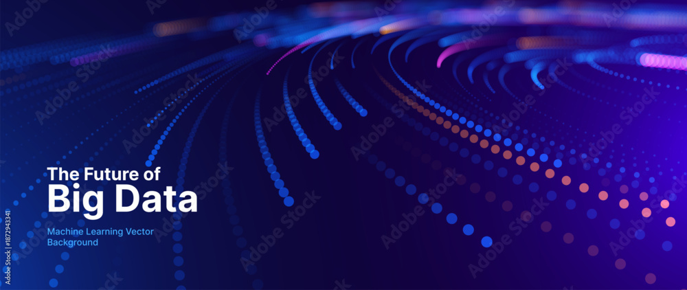 >Fototapety na wymiar>Wybrane motywy - zobacz więcej !>Zachód słońca>Big Data Technology Flow Background with Neural Network Particles and Digital Stream Lines. Futuristic Data Science Concept. Tech Business Presentation or Annual Report Template. Vector Illustration.