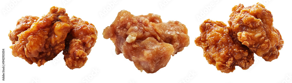 Fototapeta na wymiar - Crispy glazed fried chicken Karaage nuggets isolated on white transparent background. Concept of Asian cuisine and Japan.
