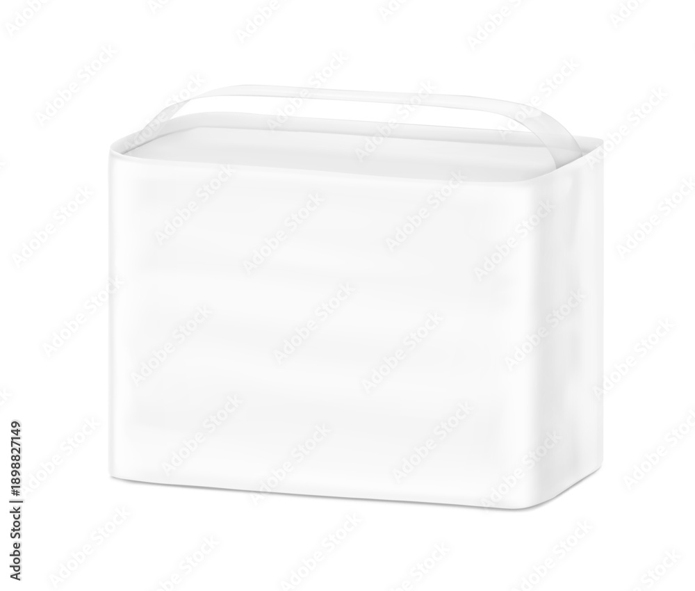 >Fototapety na wymiar>Wybrane motywy - zobacz więcej !>Zebra>Stand bag with handle mockup. Half side view. Vector illustration isolated on white background. Ready for your design. Suite for the presentation of diaper, wet wipes, changing mats, pads. EPS10.