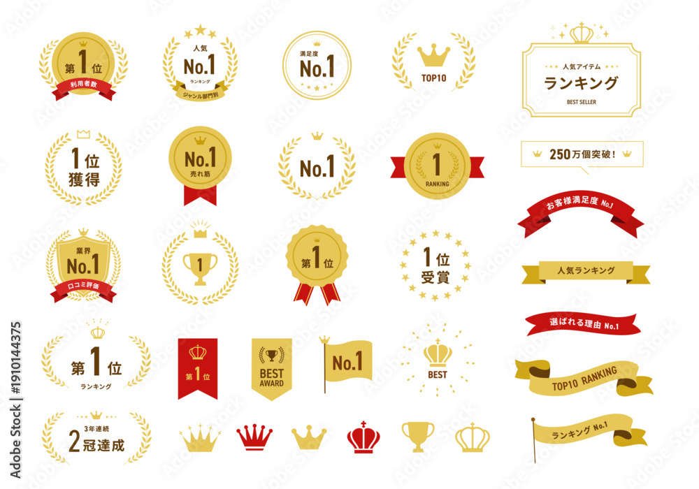 Fototapeta na wymiar - ランキング バッジ 賞 メダル フレーム アイコンセット ベクター フラットデザイン.