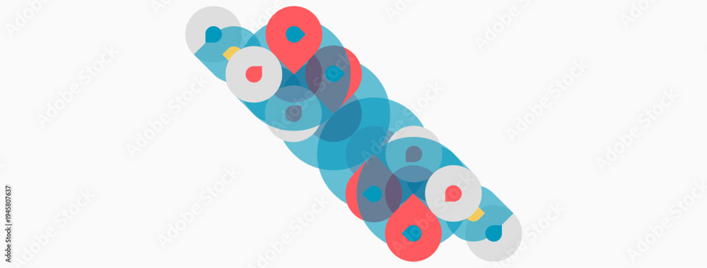 Fototapeta na wymiar - Abstract circles overlap, creating colorful pattern. Shapes vary sizes, hues, forming dynamic composition. Minimalist design, clean aesthetic..