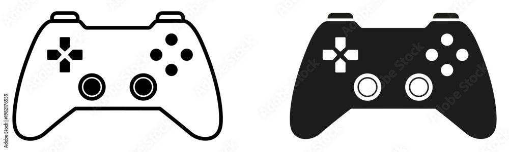 Fototapeta na wymiar - Gaming gamepad icons, play station, game controller icon in flat and line style, joystick console with directional pad.