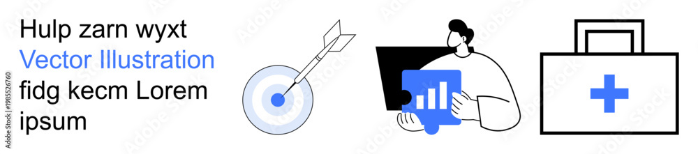 >Fototapety na wymiar>Wybrane motywy - zobacz więcej !>Zebra>Business planning, health, analytics, target achievement, professional growth, data strategy. Man analyzing data, target icon medical kit. Analytics and target achievement idea