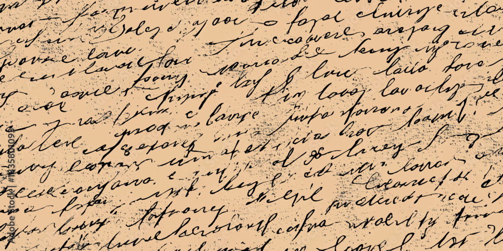 Fototapeta na wymiar - Vintage sepia seamless pattern of elegant cursive handwriting and antique letter texture for design, paper goods, and book covers..