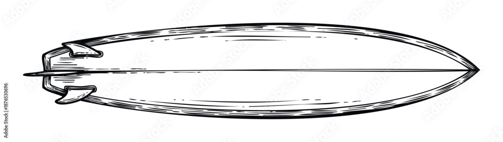 Fototapeta na wymiar - Hand drawn surfboard graphic depicting ocean recreation and beach leisure activities, suitable for promoting surf shops, travel destinations, or summer lifestyle brands and events..