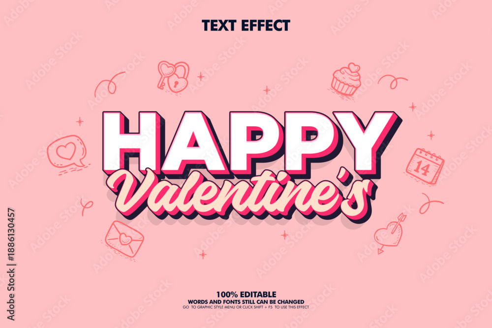 Fototapeta na wymiar - Happy Valentine's Day editable text effect with hearts and decorations.