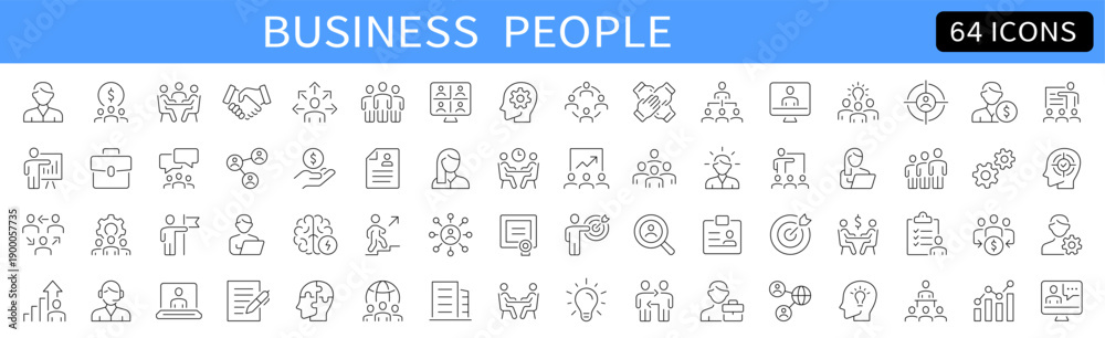 Fototapeta na wymiar - Business People and Teamwork thin line icons. Editable stroke. Vector illustration.